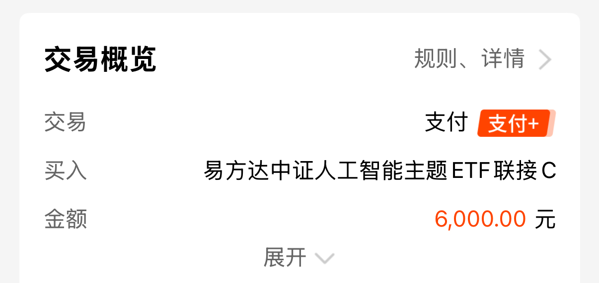 指数今天韧性还算可以,早盘有在努力拉升虽然最终还是翻绿但也稳稳守住5日线支撑,往上看前高会有一些阻力,若能突破也将打开新的反弹空间。中证人工智能指数是目前全市场人工智能含量最高的指数,国产CPO光模块在AI大浪下正加速扩大产能,业绩确定性强,属于高成长赛道。易方达中证人工智能主题指数是同类中规模最大的,运作平稳,成立以来近3年:101.97%,近6月涨幅58.40%业绩,逢低我入一波。