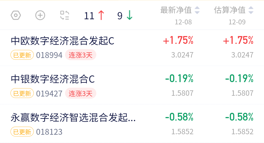 $中银数字经济混合C(OTCFUND|019427)$回调0.19%