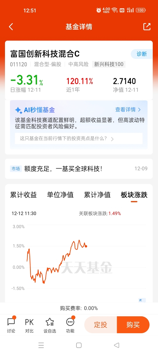 最近的市场震荡,起起伏伏的很明显,还是需要选择好产品$富国创新科技混合C$现在估