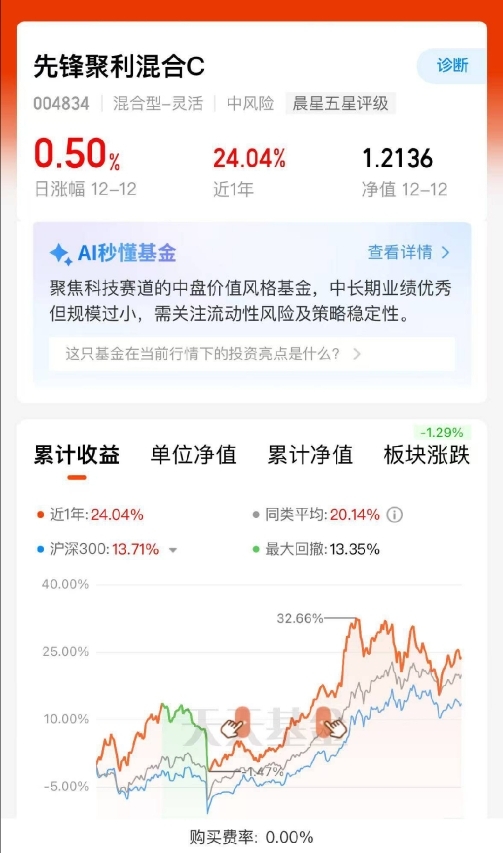 今天科技法坦,很多细分领域都在低位横盘,这恰恰是一个很好的开始,比如先锋聚利C,今日估值也处于上涨状态,连续几年的排名也能拿的出手,个人觉得这种主动基可以长期持有,因为科技板块长期处于上涨趋势,这一点毋庸置疑。