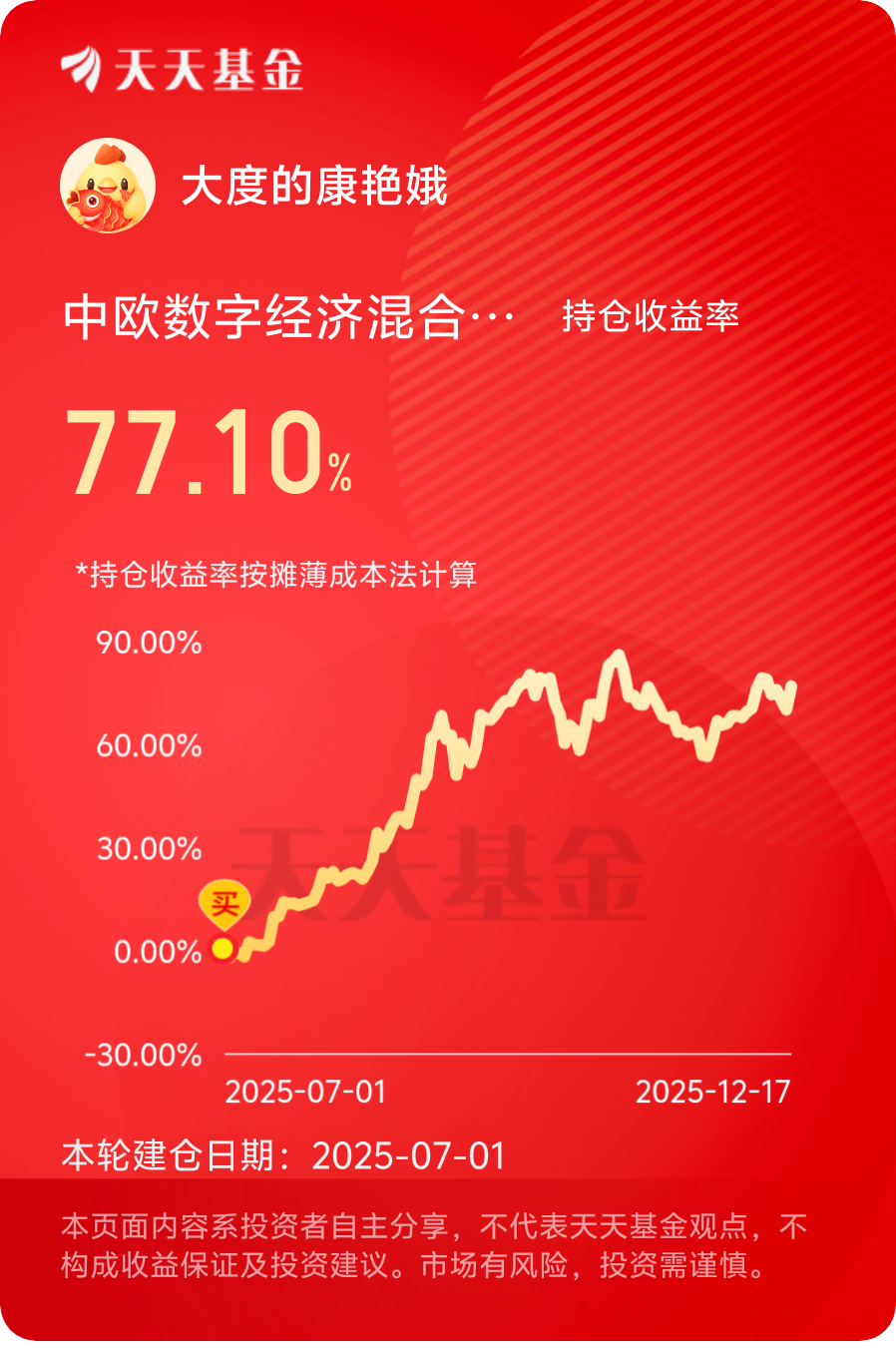 整体来说还不错,震荡行情也不好操作,就这样拿着$中欧数字经济混合发起C$ #晒收益#