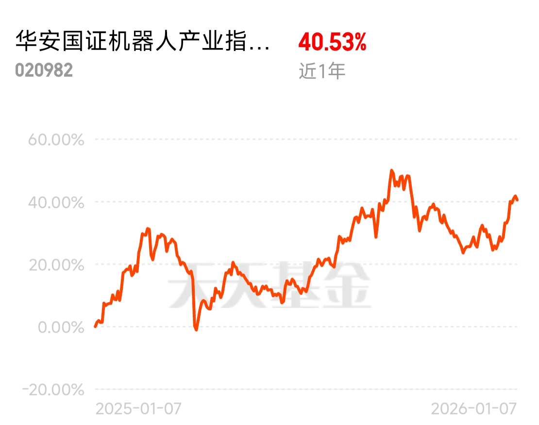 机器人风口冲!$华安国证机器人产业指数发起式C$ 近一年涨 45.34%,重仓工业龙头,政策加持超赚钱
