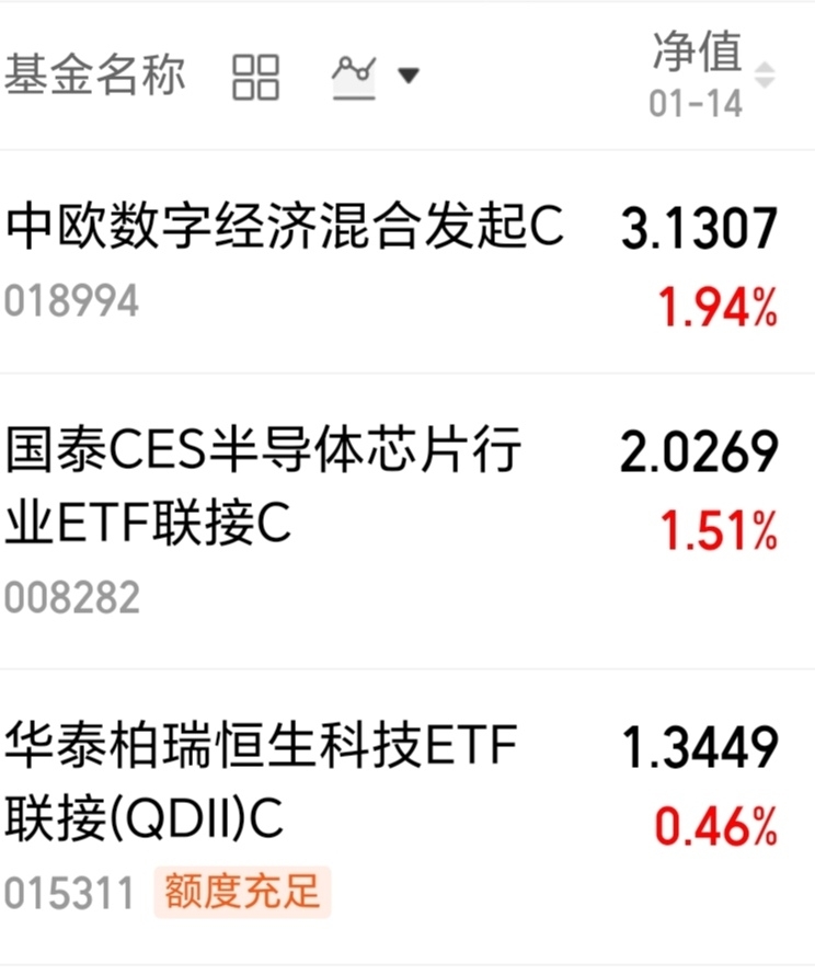 $中欧数字经济混合发起C$ 今天上涨1.94%;