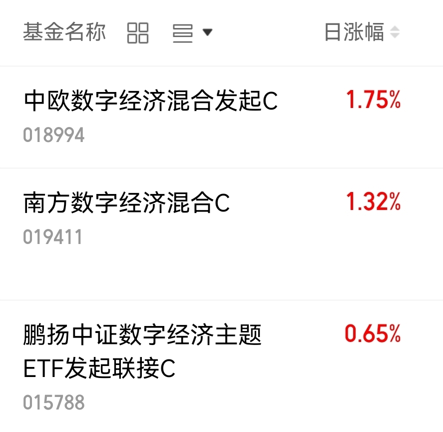 中欧数字经济混合发起C涨幅1.75%