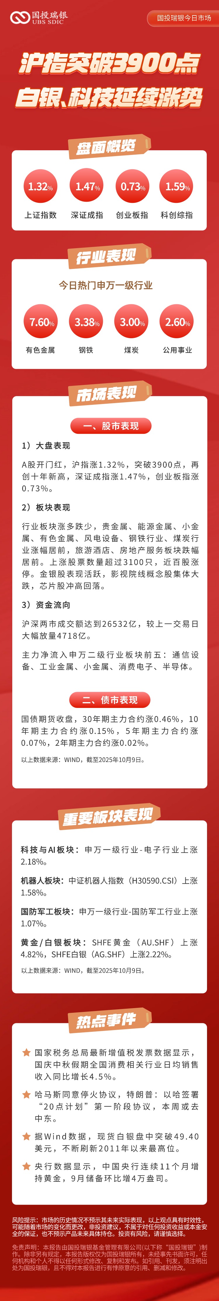 10月9日:沪指突破3900点,白银、科技延续涨势!