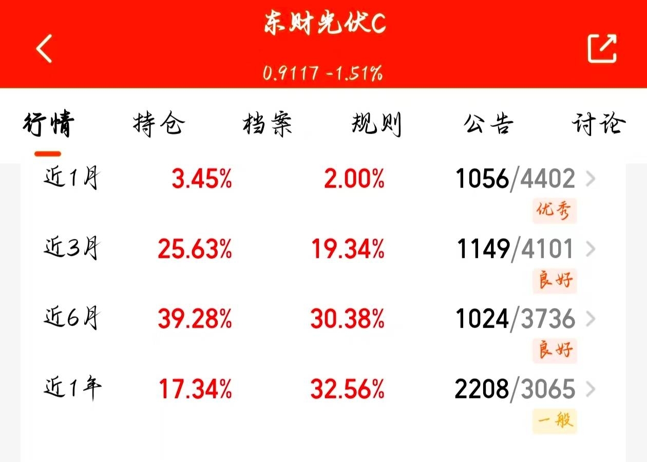 最近光伏板块动静不小,东财光伏C表现挺亮眼,今天预计又涨了2.62%,近一年稳稳