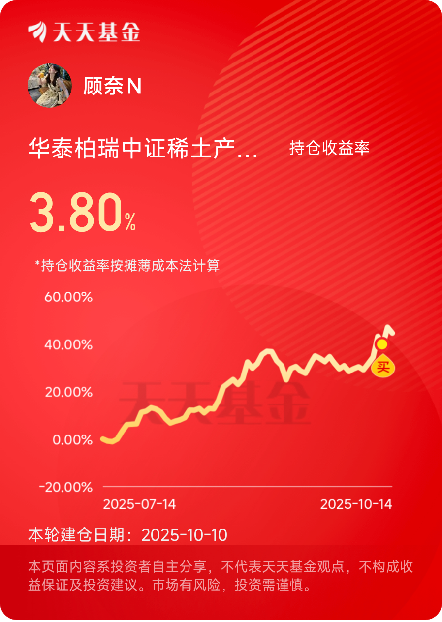 还不错的,$华泰柏瑞中证稀土产业ETF发起式联接C$ 近6个月70.84%收益超预期!关税背景下稀土价值凸显,每次下跌都是机会。#晒收益#