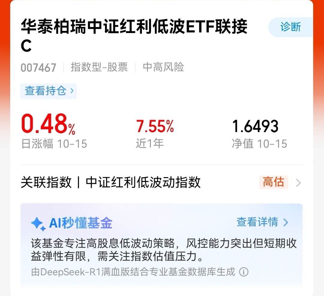 在当前关税摩擦升级的背景下,市场波动加大。像$华泰柏瑞中证红利低波ETF联接C$
