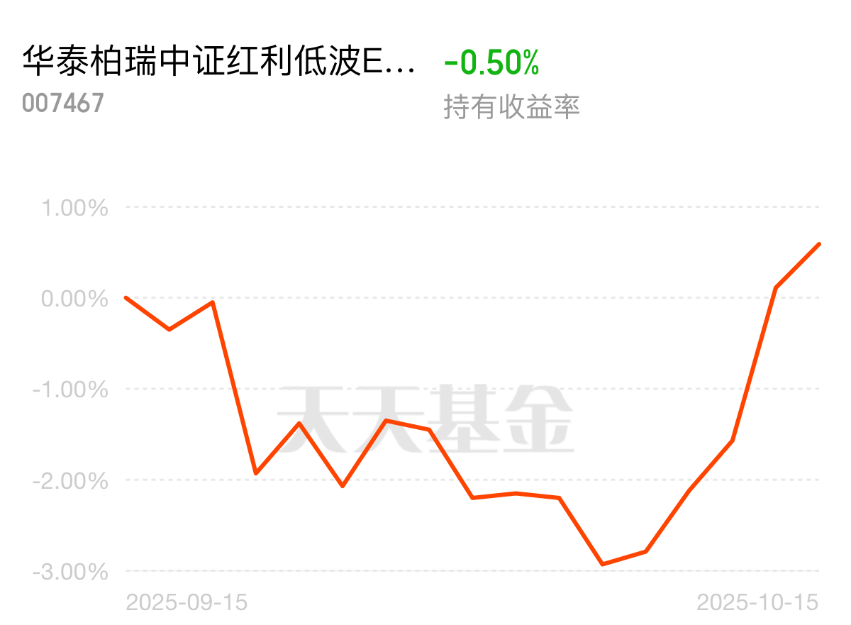 市场风险偏好下降,$华泰柏瑞中证红利低波ETF联接C$连续6日逆市走强。高股息策