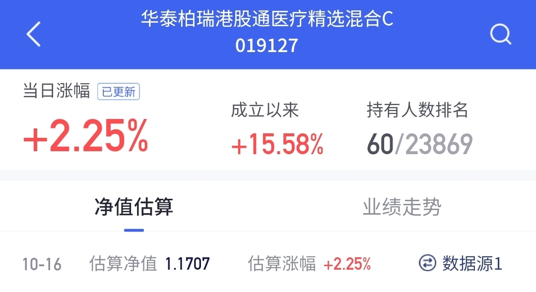 创新药板块这两天终于动了,华泰港股通医疗今天跟涨2.25%,收获两连阳。其持续性要看后续学术会议的数据读出能否超预期,保持关注。$华泰柏瑞港股通医疗精选混合发起式C$