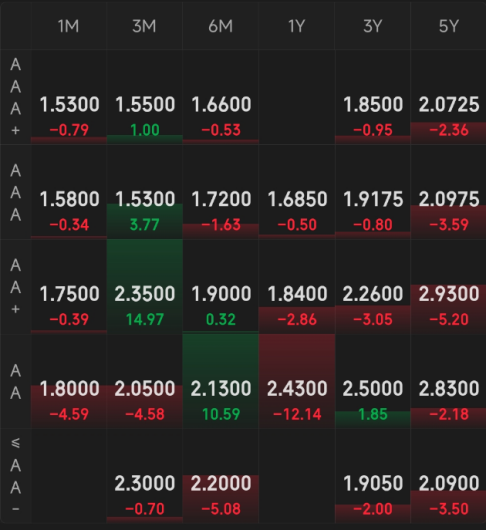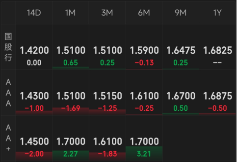 同业存单:晴天,涨多跌少。