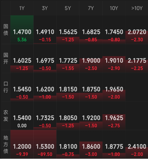 利率债:晴天,涨多跌少。