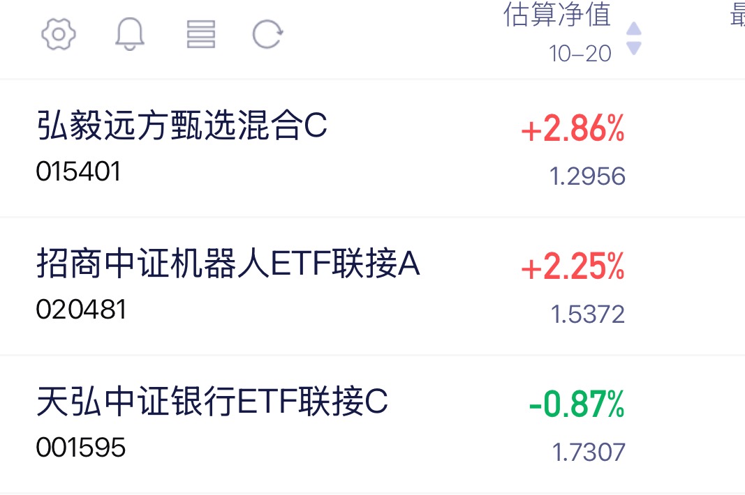 优秀的嘞,今天机器人整体涨幅走势还是蛮给力的呢,车上的友友们又幸福咯,这不我在看的这个$弘毅远方甄选混合C$表现还是可以的呢!目前估值涨幅2.86%车上的友友们又幸福了咯,看得我心痒痒的!