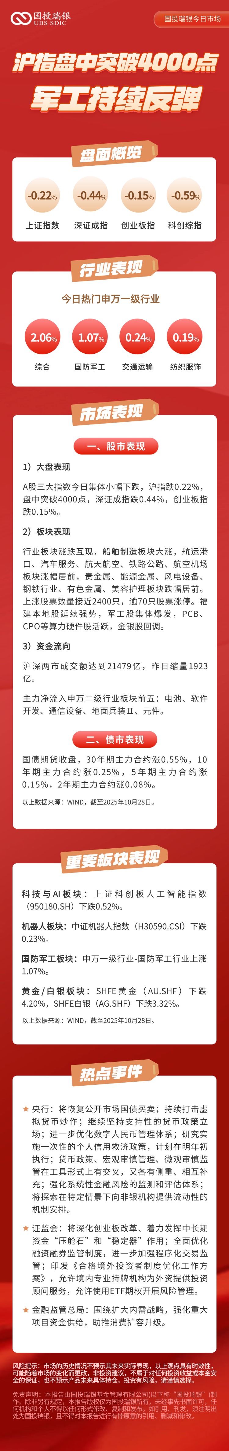 10月28日:沪指盘中突破4000点,军工持续反弹!