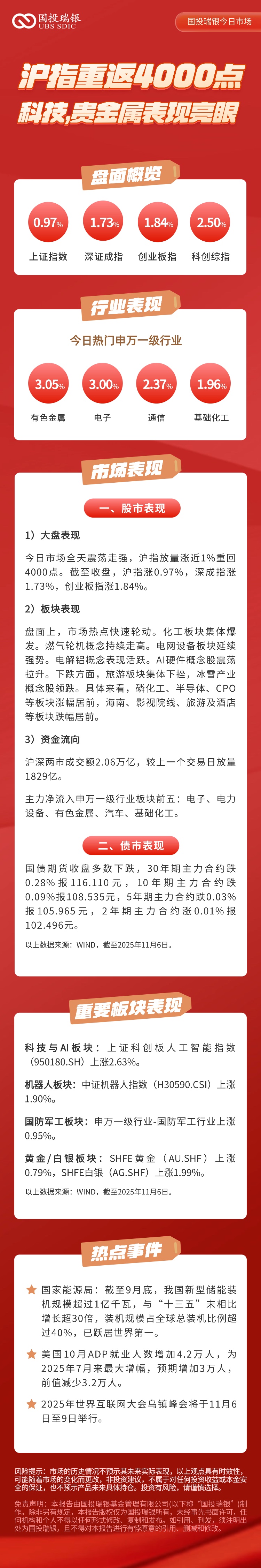 11月6日:沪指重返4000点,科技、贵金属表现亮眼!