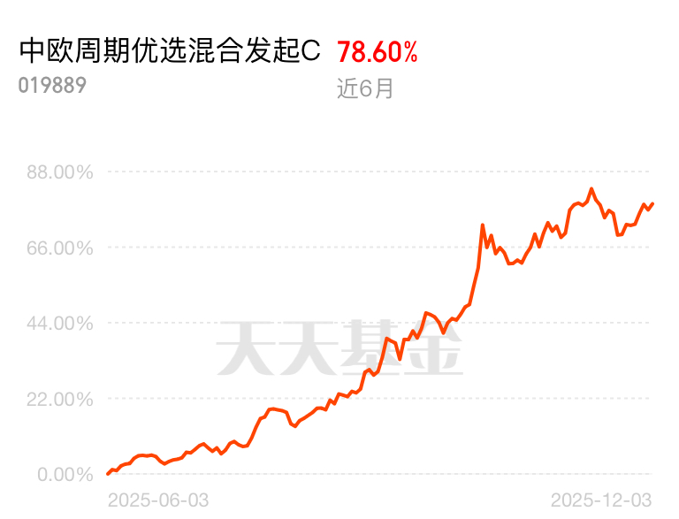 LME 铜价从 25 号开始连涨五天,价格噌噌往上走,资源股跟着水涨船高。中欧周期优选混合发起 C 近 6 个月 78.60%,深度布局铜产业链,资产重估收益稳稳拿。