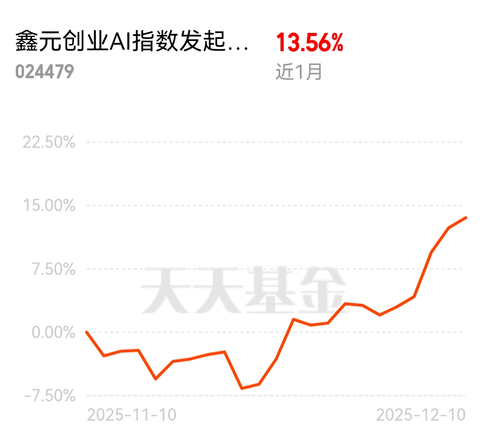 伙伴们市场行情还不错啊,$鑫元创业AI指数发起式C$ 估值继续冲高,近一月涨13.56%,涨幅同类超亮眼