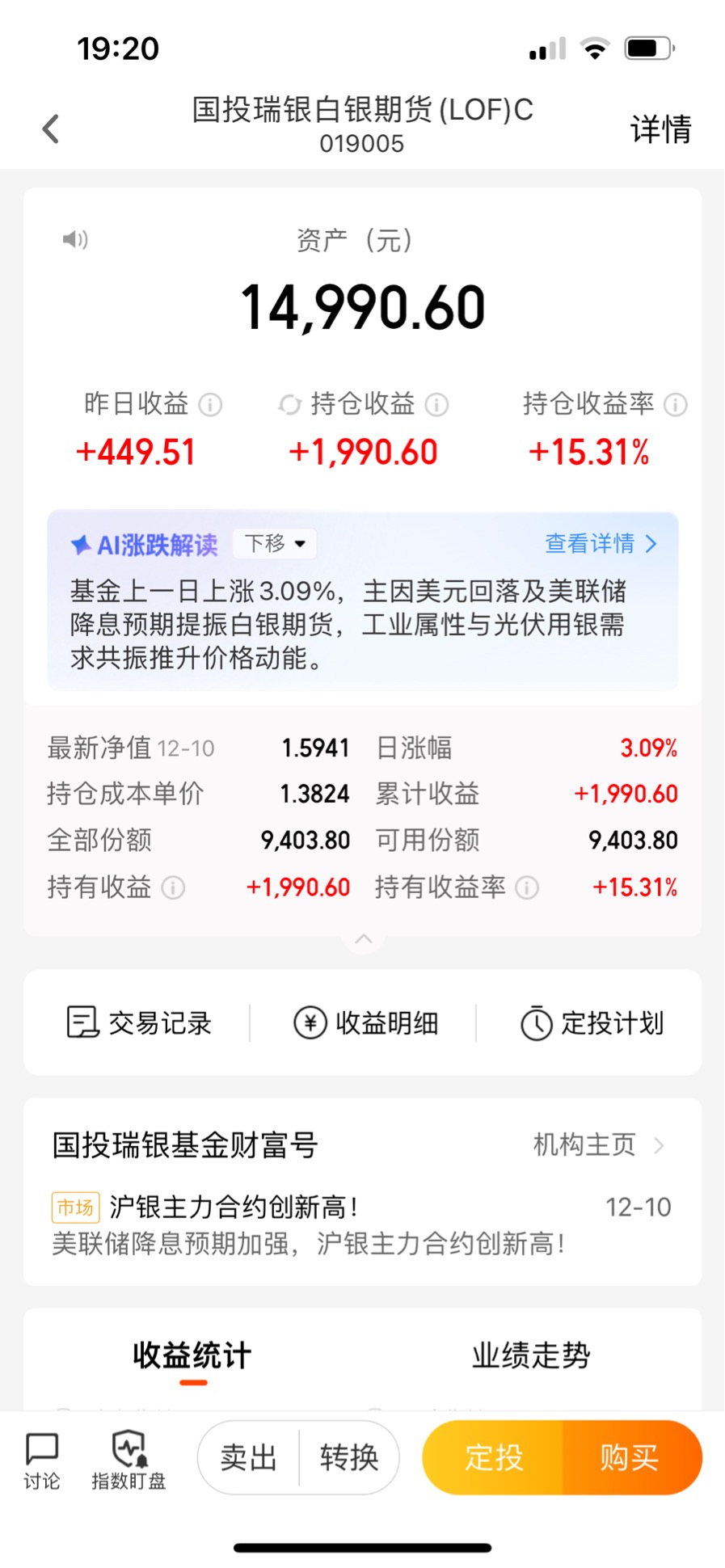 $国投瑞银白银期货(LOF)C[019005]$ 随手买,随随便便涨了15个点,看来今年白银是涨得好!可惜限购而且买晚了