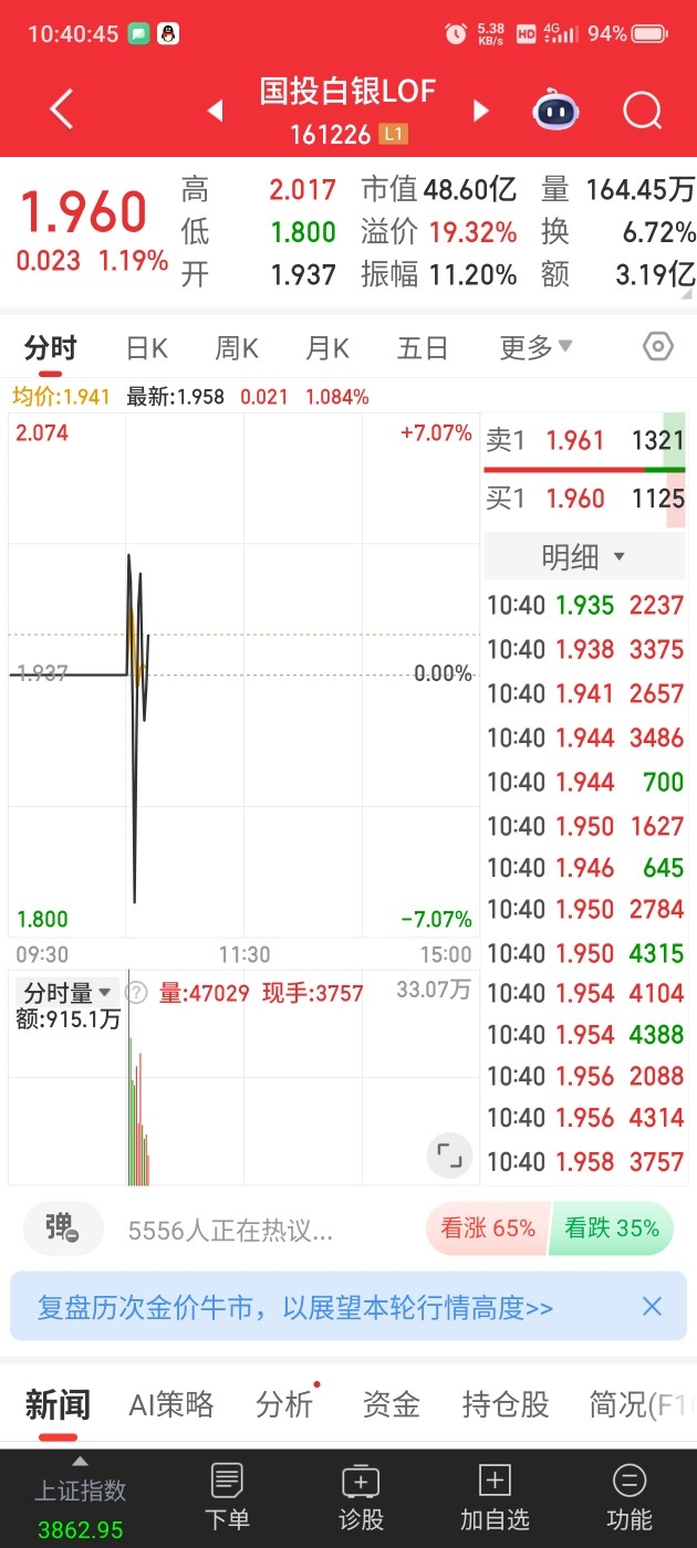 场内好刺激,停牌复牌后从涨四个点一口气杀到跌7个点,从跌7个点又拉红。