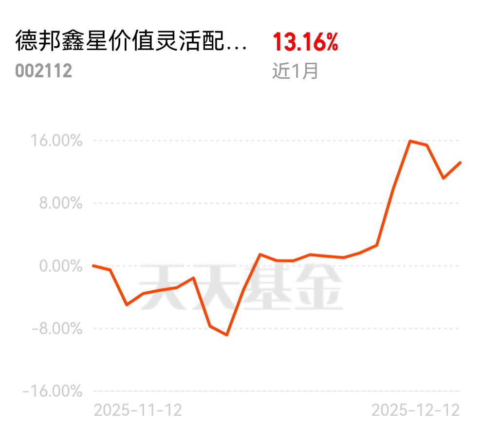 年末资金纷纷回流市场,权益资产成香饽饽,德邦鑫星价值灵活配置混合C近1月赚13.