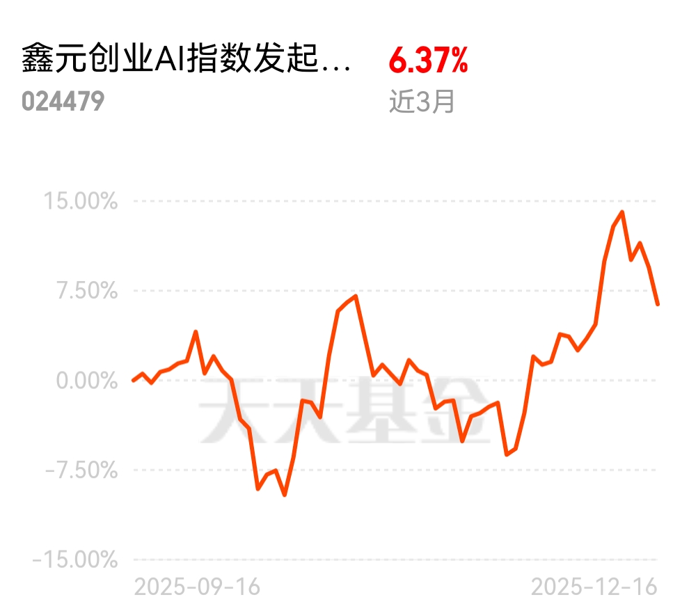 给力的,$鑫元创业AI指数发起式C$近3月涨6.37%,跟踪创业板人工智能指数,