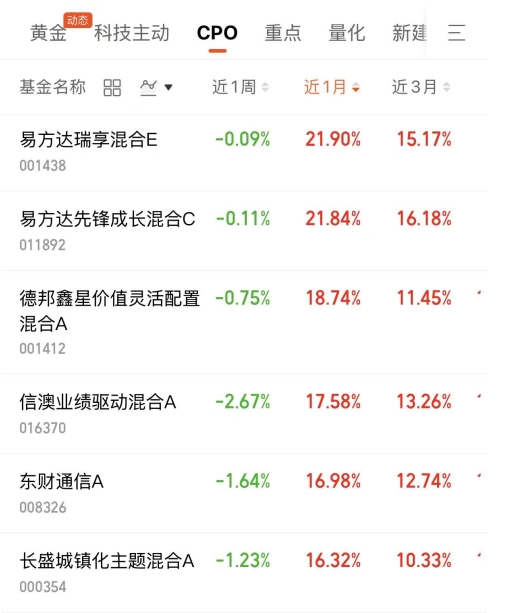 牛市行情板块轮动快,最近CPO赛道涨势不减,易方达瑞享混合E聚焦科技板块,同时多个赛道轮动,近一个月上涨21.9%,阶段收益都比同类优秀呢,成立以来已经涨了4倍,业绩能力强,夏普比率极高,能涨抗跌小能手。