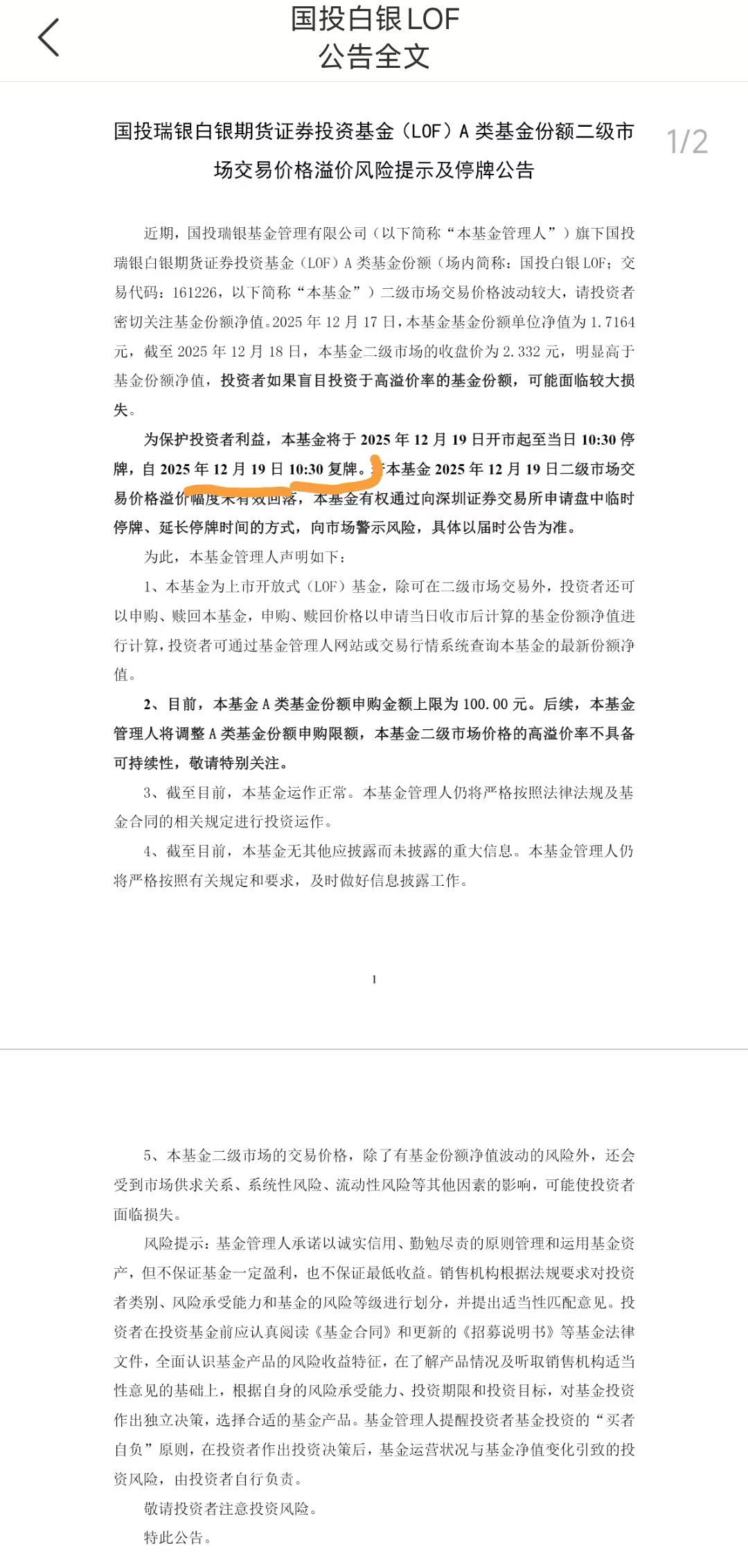 $国投瑞银白银期货(LOF)A(OTCFUND|161226)$