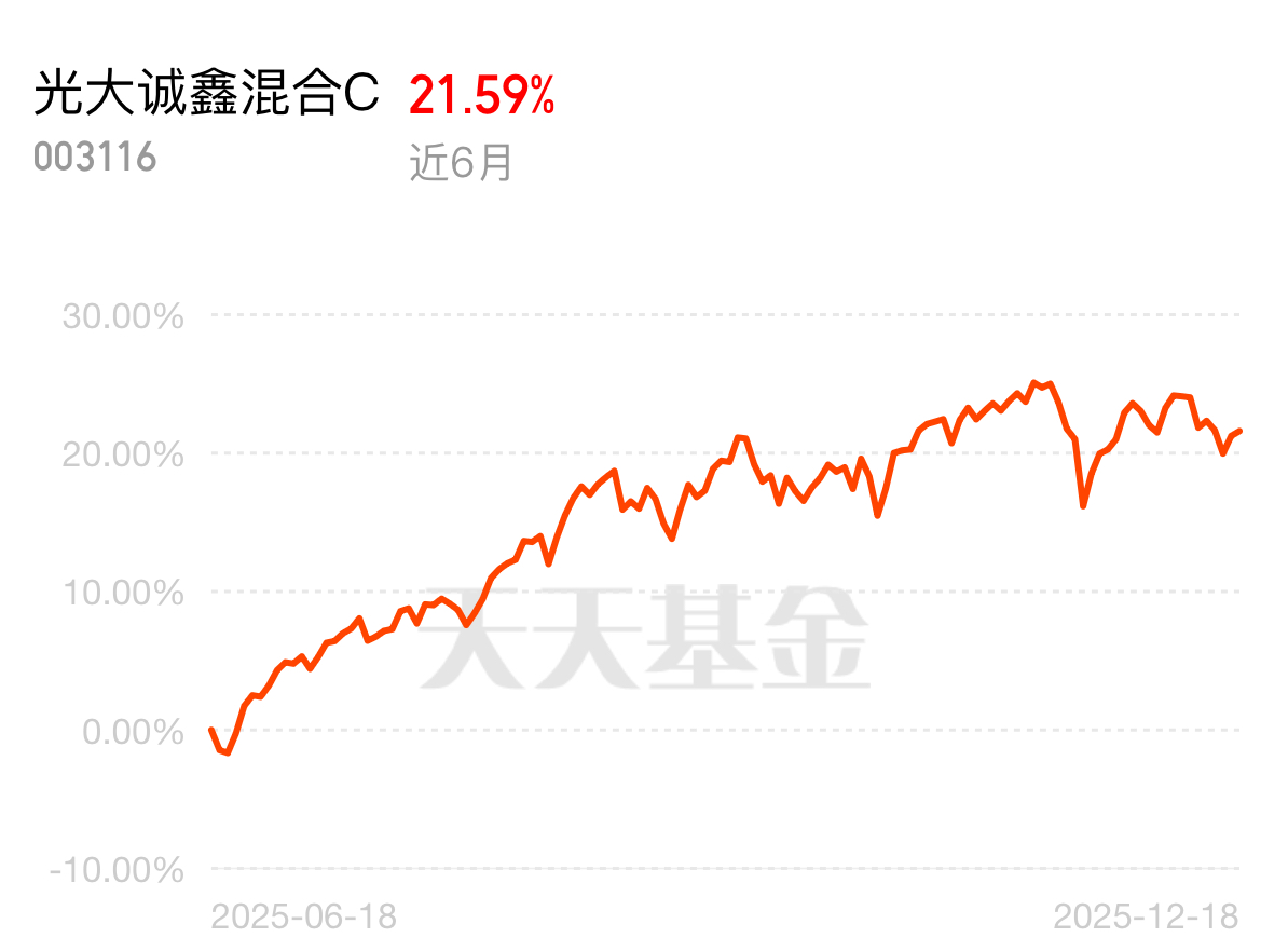 现在投资者都变理性了,不追爆款只看真业绩。光大诚鑫混合 C 用实力说话,近 6 个月收益 21.59%,没有花哨宣传,全靠业绩圈粉,适合想长期稳健理财的朋友。$博时中证500指数增强A$ $国投瑞银开放视角精选混合A$ $鹏扬中证500质量成长ETF联接C$