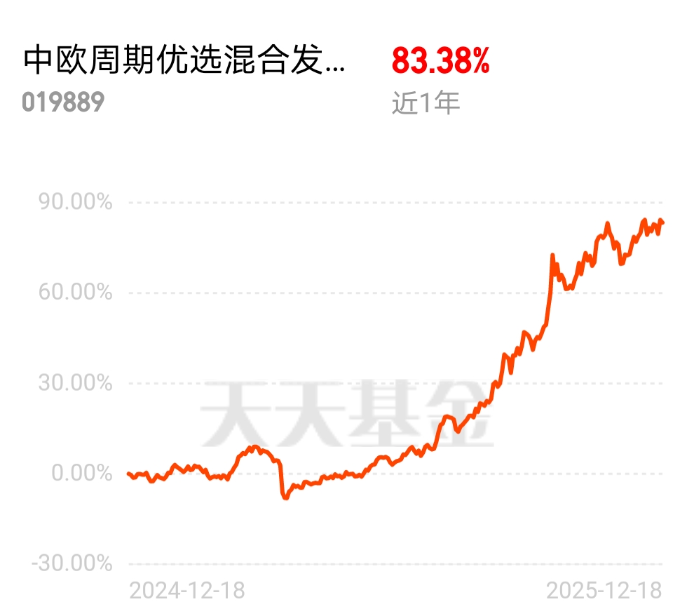 现货白银突破 65 美元,黄金价格站稳 4300 美元关口!中欧周期优选混合发起 C 近 6 个月 74.33%,在周期资源类基金里成绩顶尖,契合新型工业化推进,长短逻辑都在线。