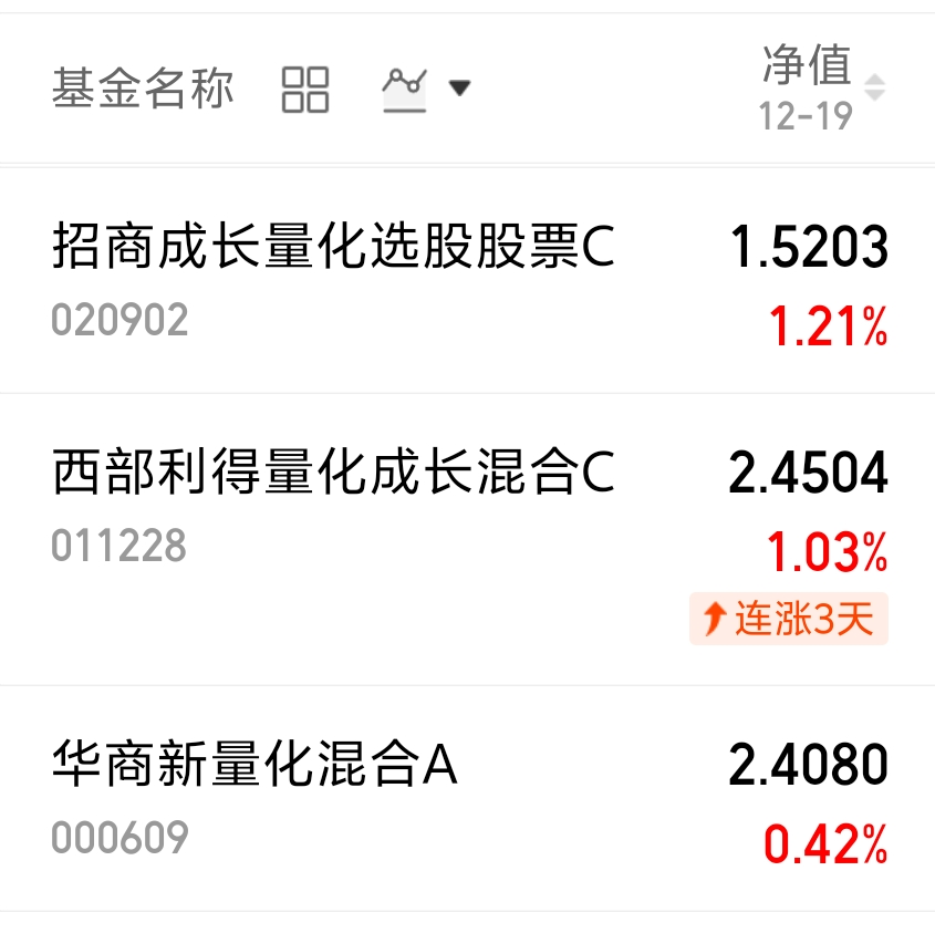大盘今天继续上涨,上周五整体涨了不少呢,中小盘股表现也很不错,量化基涨起来了!$招商成长量化选股股票C$ 上周五涨了1.21%,表现还不错!!