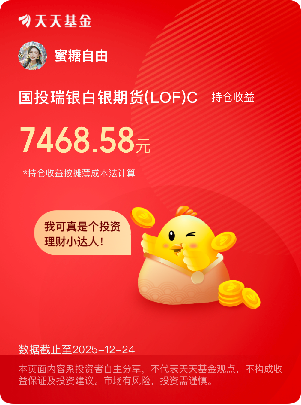 $国投瑞银白银期货(LOF)C[019005]$ #晒收益#