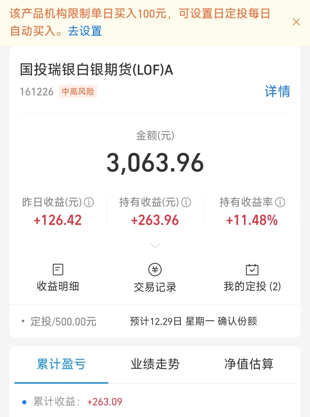 门大开时我不敢进多,现在门关的仅剩一条缝了——29日起国投瑞银白银AC都只能上车100了。