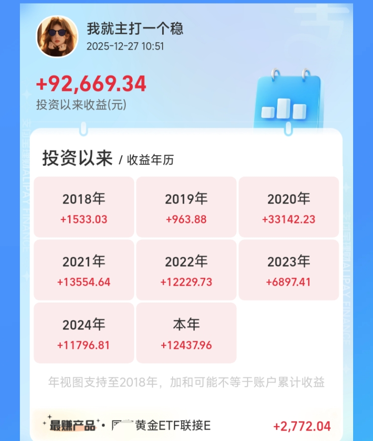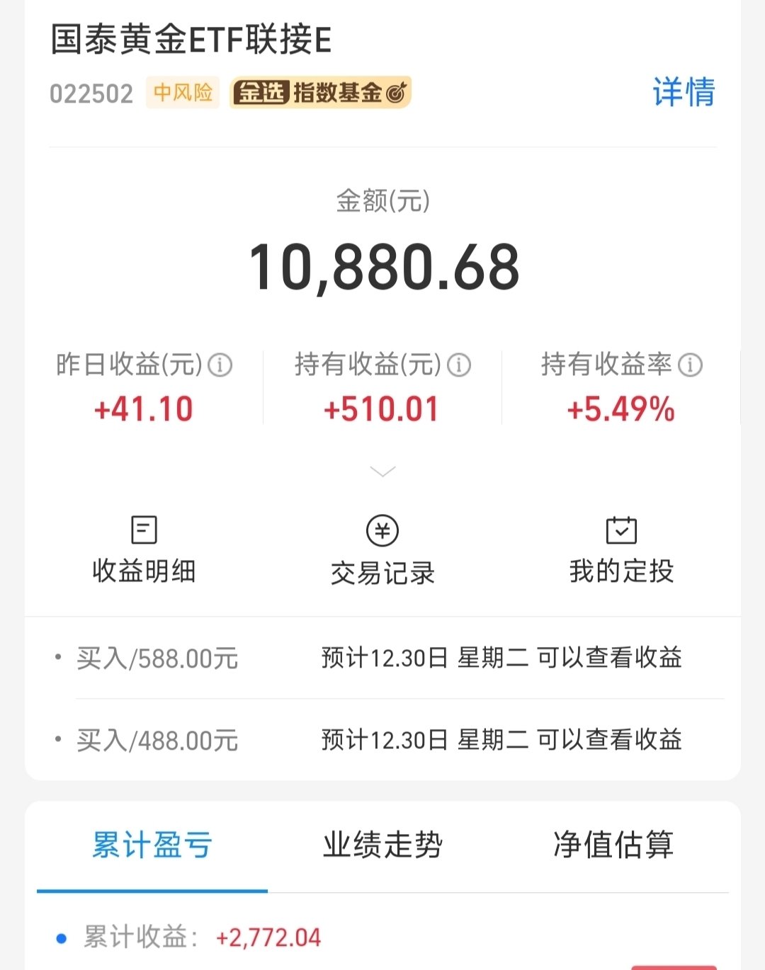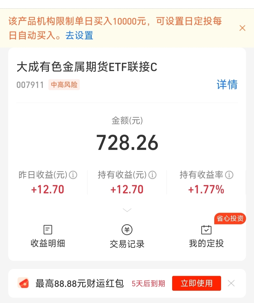可惜了了,我胆小,一直恐高不敢多进,就买了这么点。白银3千,黄金1万,有色金属700。基到涨时方恨少啊,哎