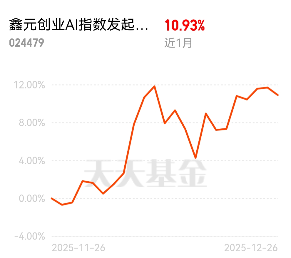 $鑫元创业AI指数发起式C$ ,近一月涨10.93%,紧扣AI主线不跑偏,重仓创业板优质赛道股,贴合产业趋势有潜力