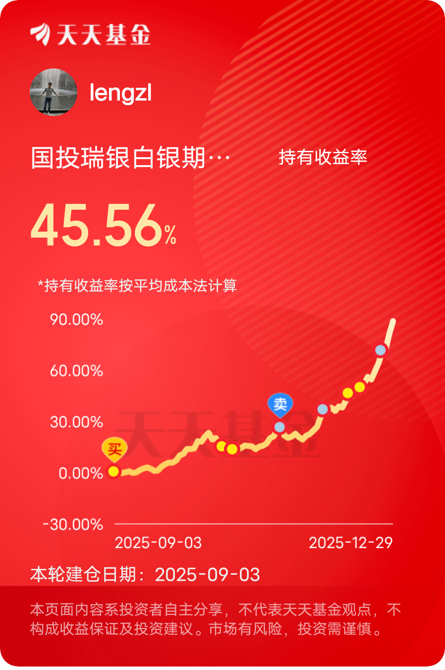 白银持有收益已经到了45%今天到现在为止,股指下跌5%,看看海外市场,美股白银重金属都是大跌的(需要保证金),本身也虚高太多了。我先卖出一半,剩1000块,后面慢慢看看什么情况,我的预估是大概率会回调一段时间。