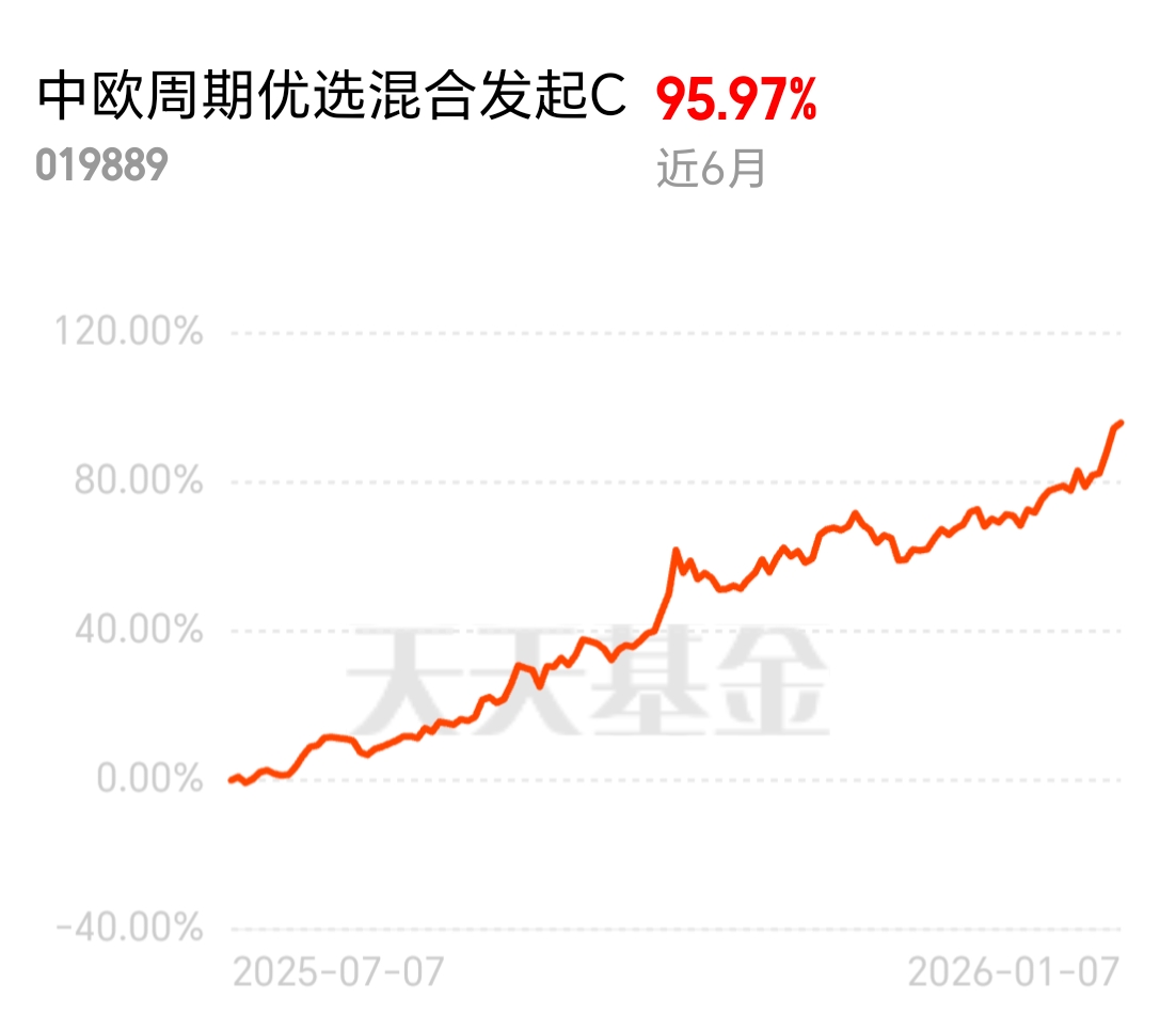 全球地缘风险加剧,贵金属需求上涨带动周期资源板块走强,资金持续青睐。中欧周期优选混合发起 C 近 6 月 95.97%,近一年业绩有色赛道第一,行业集中度更高,跑赢有色金属指数,在资源类基金里名列前茅。