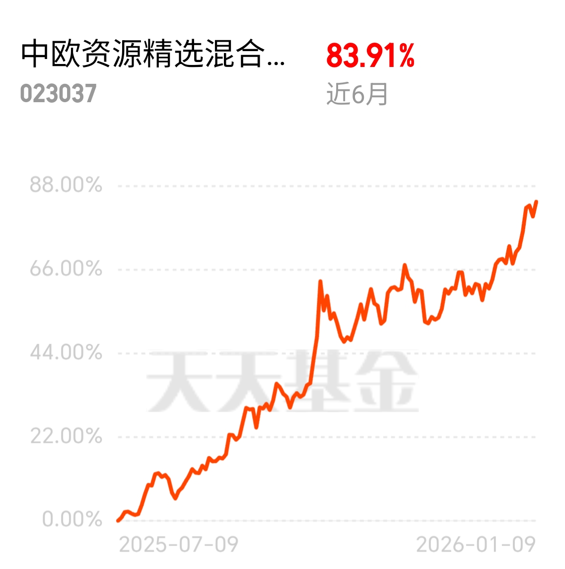现在市场里资金都在往周期资源跑,毕竟科技行情不明朗,震荡市得选稳当的。供需支撑足还强势的周期资源更靠谱,中欧资源精选混合发起 C 近 6 月 83.91%,在同类周期资源主动基金里排名前列。$中欧资源精选混合发起C$