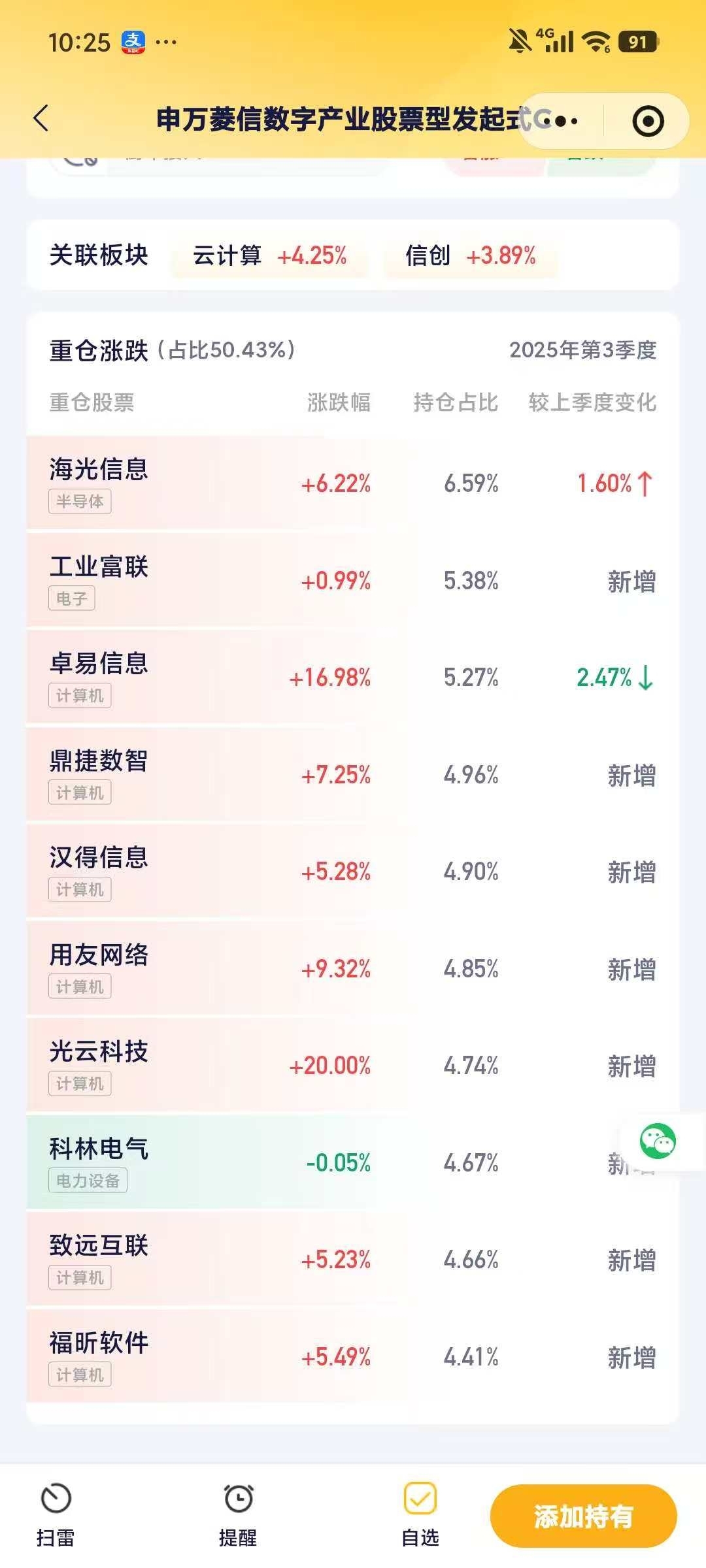 还得是$申万菱信数字产业股票型发起式C$啊!这只全面聚焦计算机,今日估值已超6个