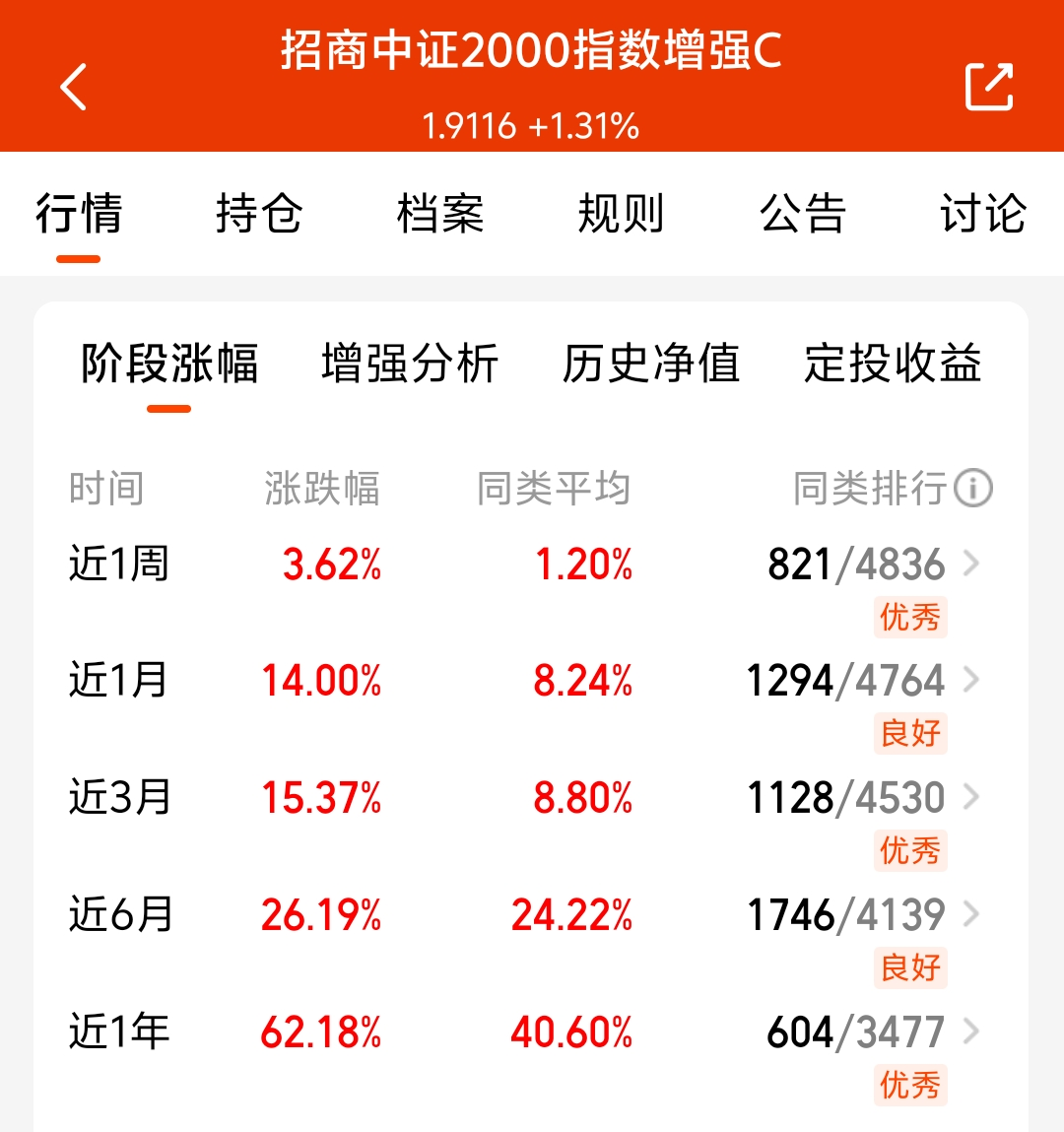 大盘今天震荡调整,小微盘近期表现还不错呢,当前市场流动性比较好,利好小微盘,$招商中证2000指数增强C$ 持仓聚焦小微盘,近一周涨了3.62%,近一月涨了14%,业绩还不错呢,看好这个方向,我准备分批布局!