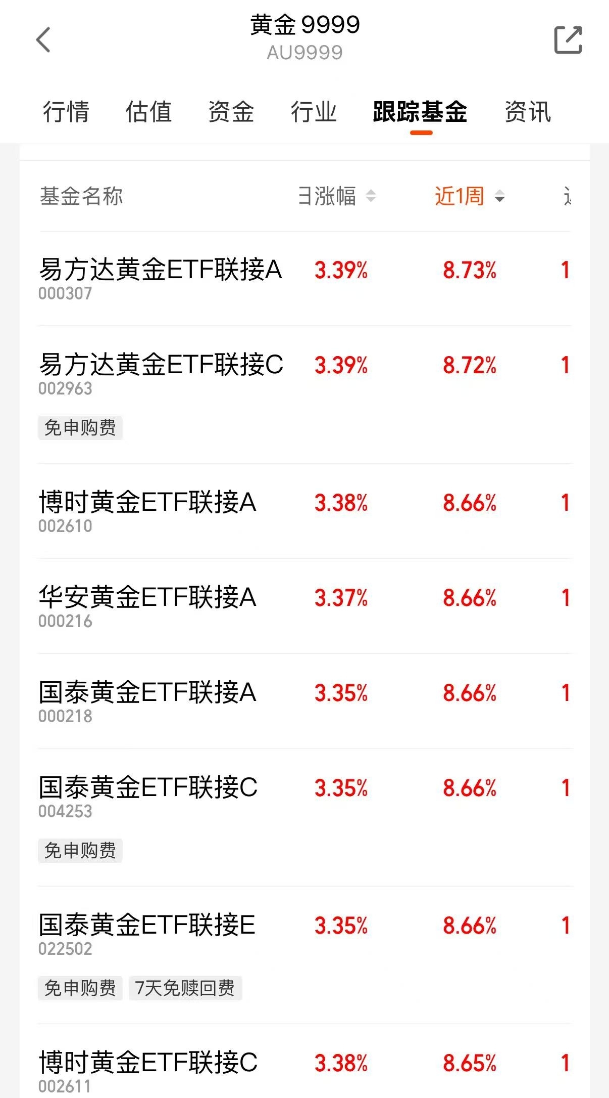 尤其是这支$易方达黄金ETF联接C$ ,近一周就已经上涨了8.73%,同类排名已经很靠前了,短期积累了不错的赚钱效应,所以,避险属性可能还是强一些,而且,金价一度站上5600美元,设限就会踏空,我是长期看好的!
