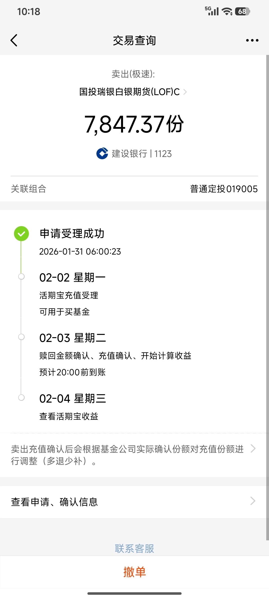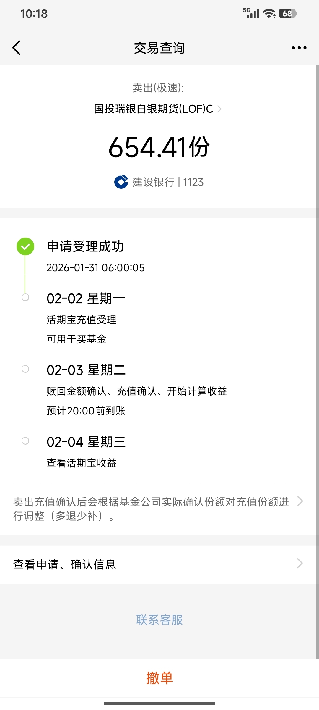 $国投瑞银白银期货(LOF)C$今天早晨6点卖的,周一是不是也得跟着跌呀