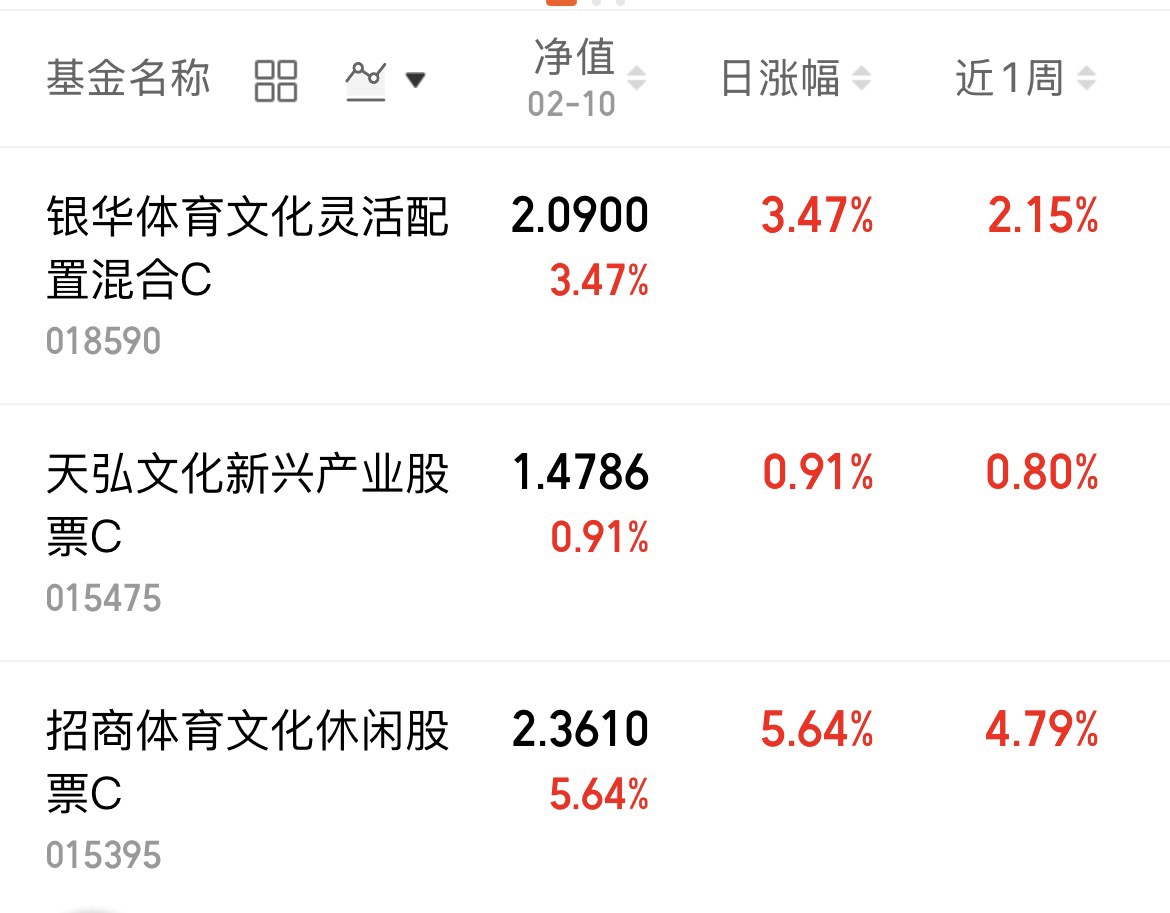 $银华体育文化灵活配置混合C$ 昨天大涨3.47%
