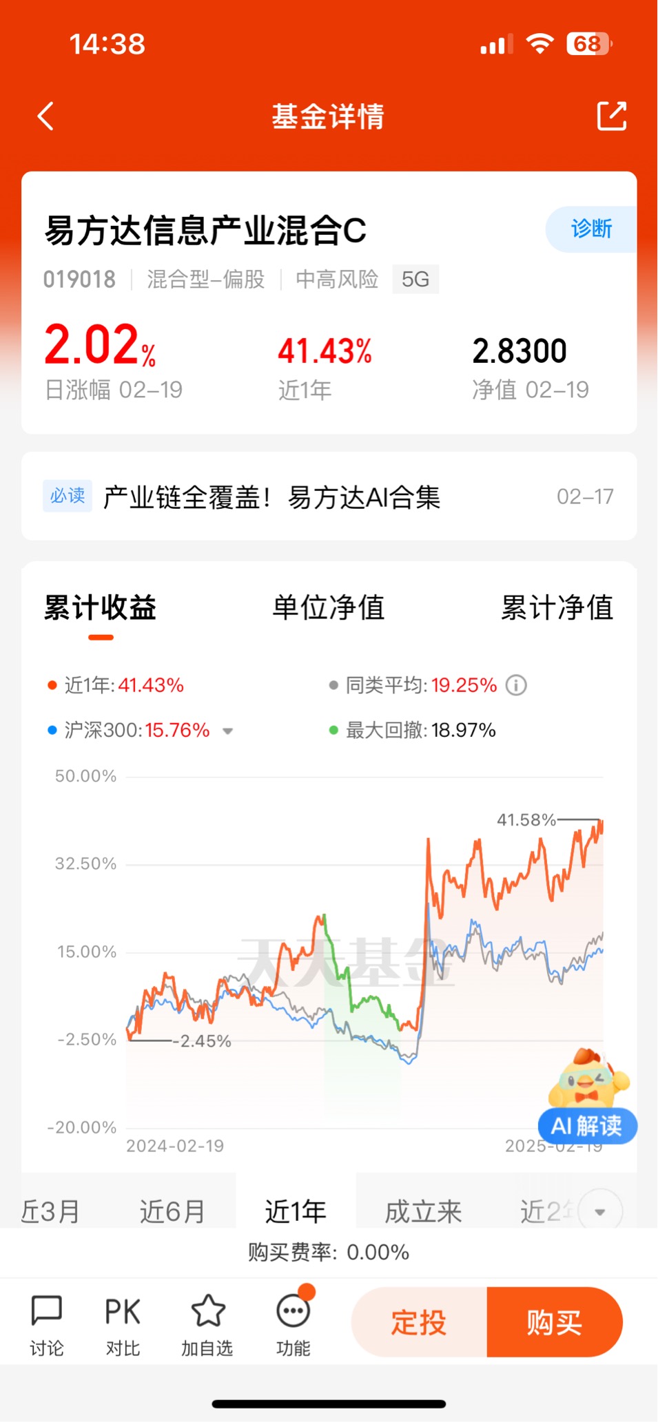 我认为是可以的,科技的爆发是持续的,市场上既然给到了赚钱信号,那就要抓住机会,毕竟这种机会不多,当行情来临的时候,一定要学会放大利润,让利润奔跑。在这场科技盛宴中,我关注到$易方达信息产业混合C$