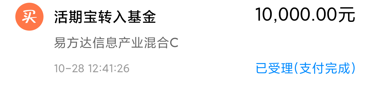 加仓买进10000的 $易方达信息产业混合C(OTCFUND|019018)$