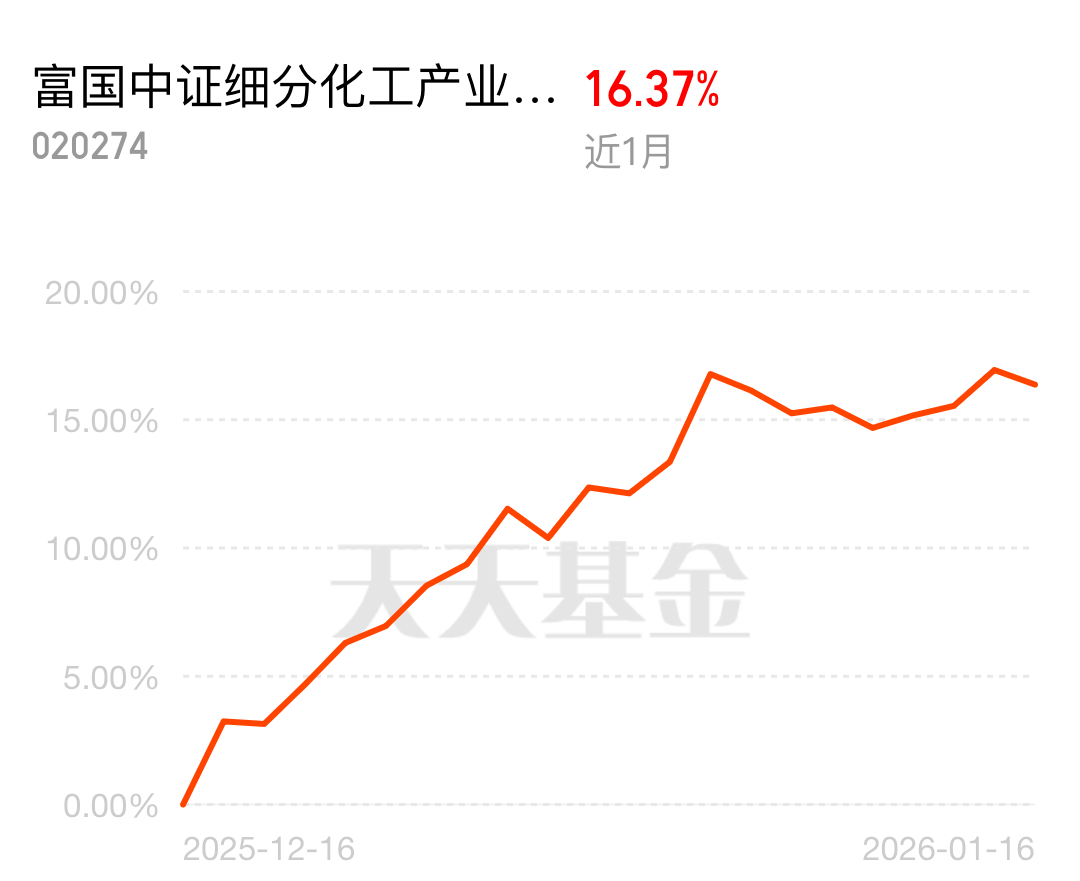 近期华泰柏瑞科技创新C展示不错,让小赚了一笔,顺便看了眼搭配的富国中证细分化工产业主题ETF联接C近1个月涨了16%,近3个月涨了22%,在同类里确实跑得快;它跟踪的指数覆盖化学原料、精细化工等细分龙头,受益于开工率提升和价差恢复,富国中证细分化工产业主题ETF联接C布局高分子材料等方向,适合关注周期反转与结构升级的配置思路。