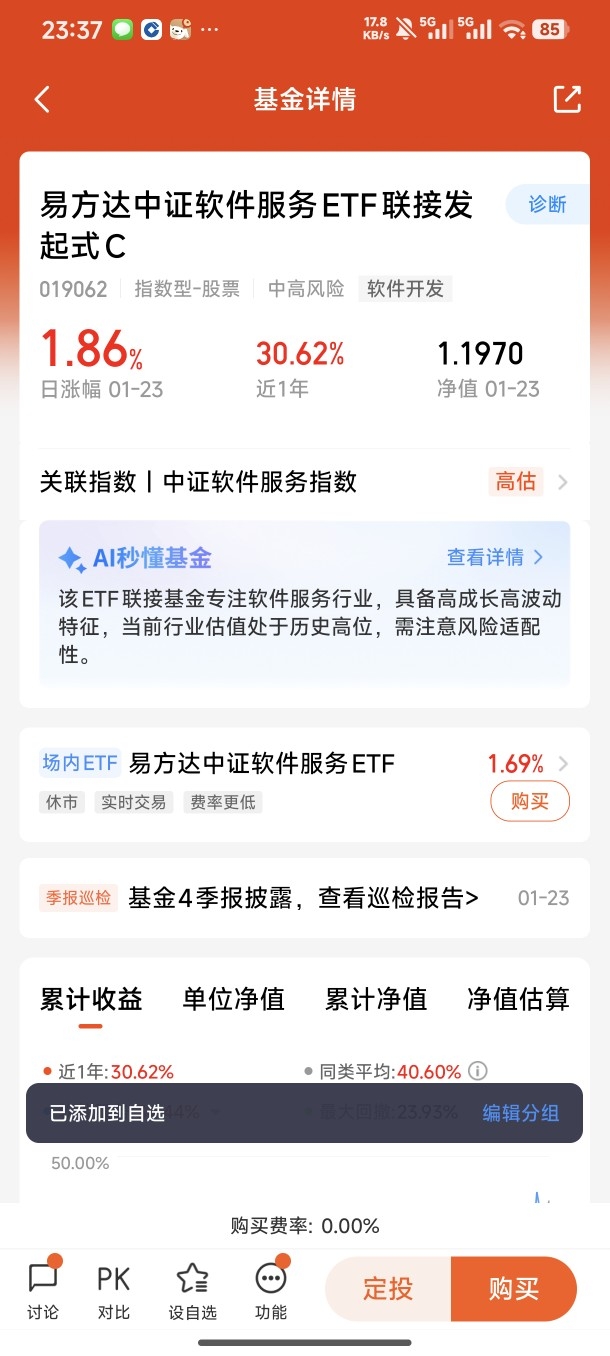 此外,软件服务行业作为AI应用的“承载体”,具备极强的产业协同性。2026年AI硬件入口日趋多元,智能汽车、机器人、AI眼镜、智能家居等硬件的普及,都需要软件服务提供底层技术支持和场景化解决方案,硬件与软件的协同发展,将持续打开软件服务行业的成长空间。而易方达中证软件服务ETF联接发起式C作为指数基金,能全面覆盖软件服务产业链的优质标的,分享行业整体增长的红利,同时C类份额具备费率优势,0申购费且持有满一定期限免赎回费,适合普通投资者长期布局,无需纠结短期择时。