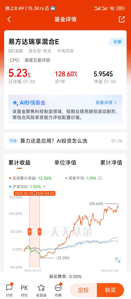 我从2025年10月开始定投这只基金,每月投入1200元,中间经历过市场震荡,但始终没有放弃。因为我清楚,AI应用的爆发不是短期行情,而是长达数年的产业趋势。截至2026年1月底,这只基金已经给我带来了18%的收益,更重要的是,它让我不用费心盯盘、猜测行业轮动,就能安心分享AI应用的成长红利。