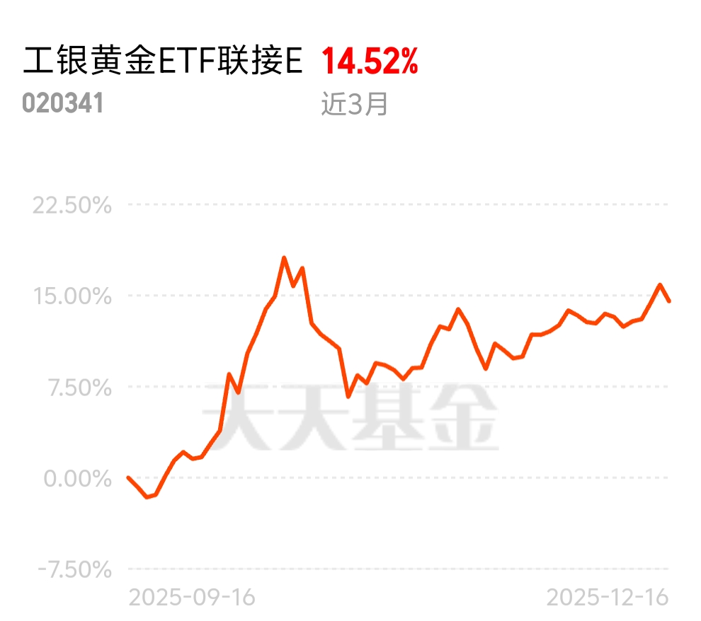 金价最近波动不小,上周五刚补一笔,这周就涨了,这只费率低、7天免赎,适合逢低买。$工银黄金ETF联接E$