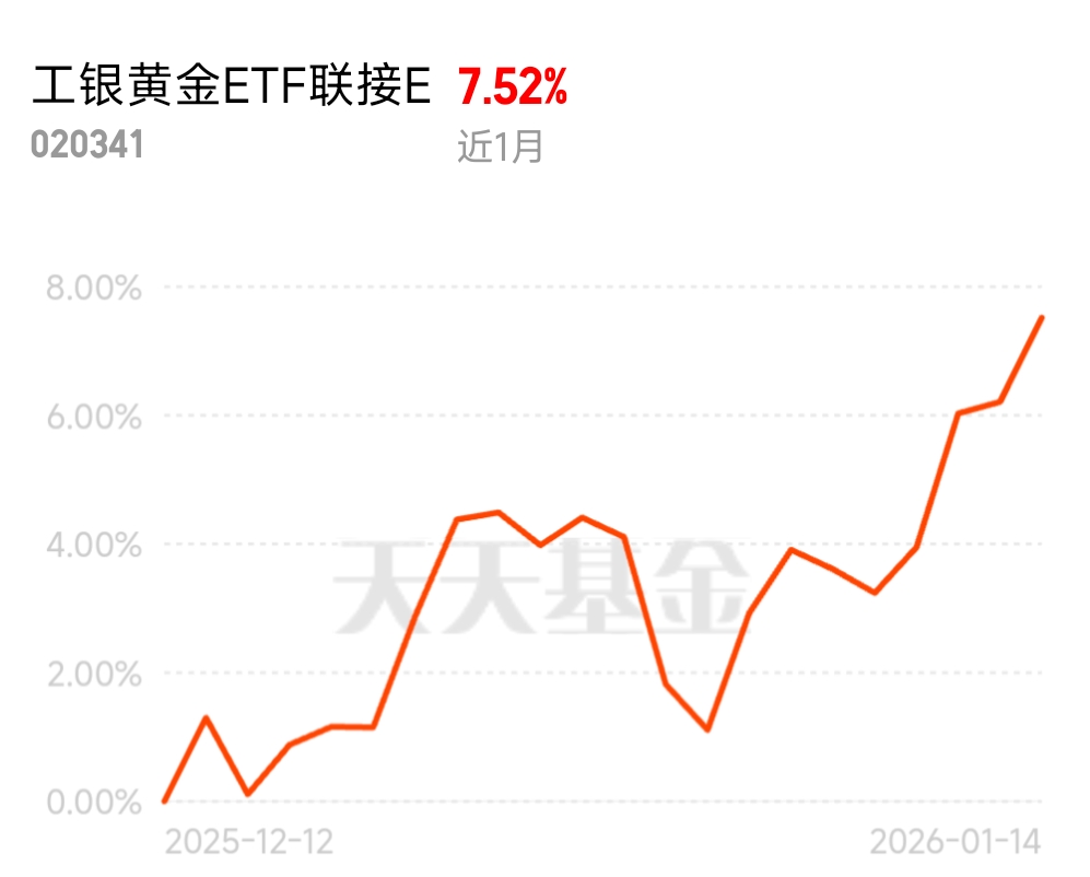 老美到处搞事增加地缘政治风险,黄金避险属性强,行情趋势也好,工银费率低,分批参与