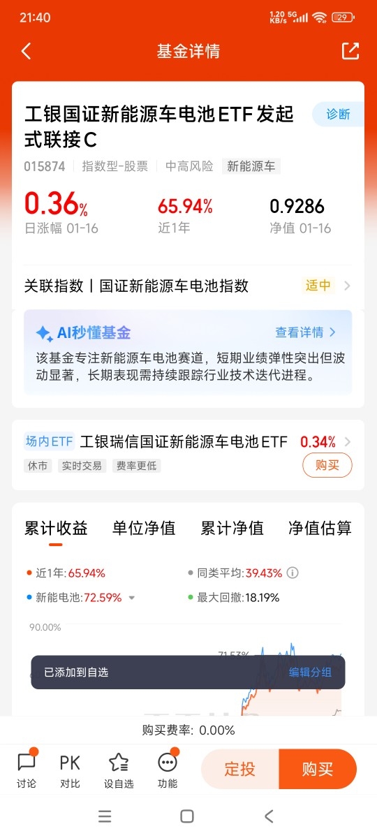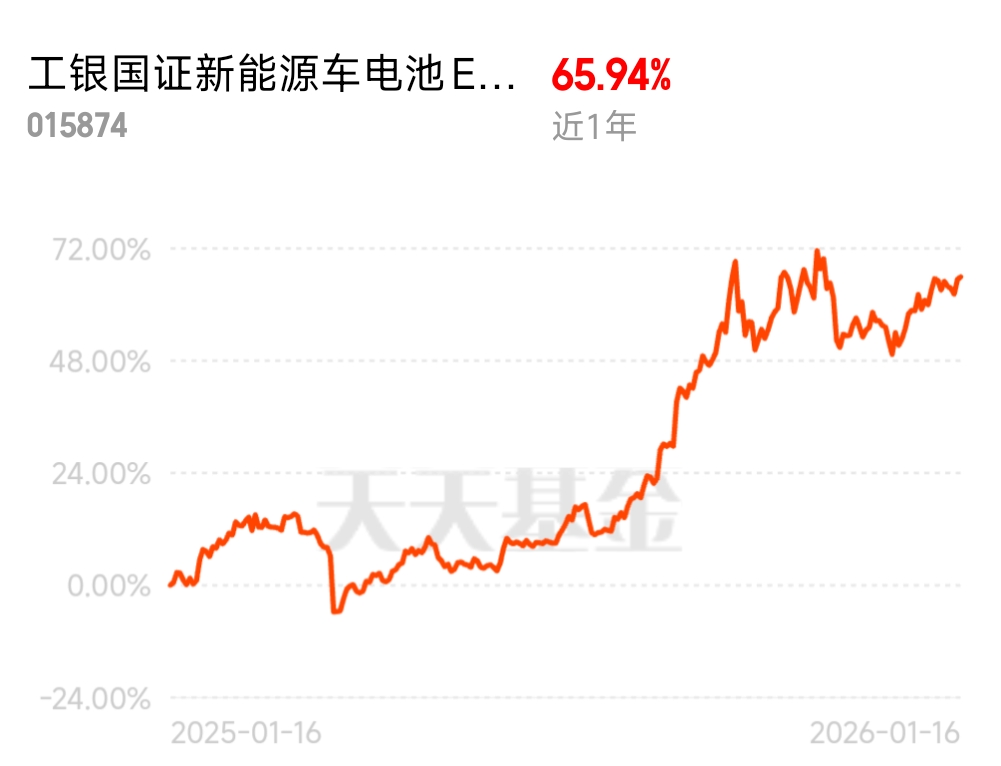 新能源车电池基金$工银国证新能源车电池ETF发起式联接C$ ,去年涨了56%以上,但成立以来还是亏的。电池产业链上下游博弈激烈,但固态电池技术突破、储能需求爆发,长期逻辑依然扎实。身边买电车的朋友越来越多,充电桩覆盖也越来越广,感觉行业远没到天花板。